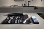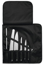 Professional Velcro roll bag made of black synthetic material, washable. Suitable for 6 knives or tools, up to 26 cm blade length