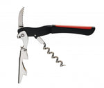Icel waiter's opener with black and red handle. Functions: two-stage corkscrew, bottle opener, foil cutter.