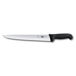 Victorinox Fibrox Chop and steak knife with a straight edge 30 cm long blade and black synthetic handle.