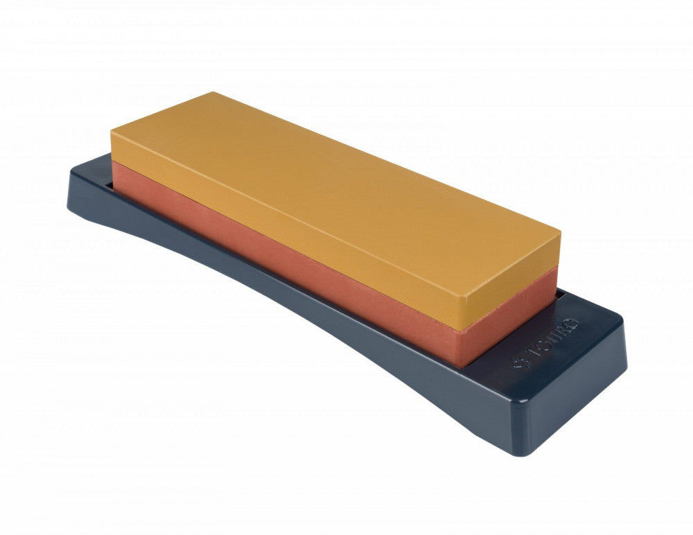 A combination of 1000 and 3000 grit for home use. Suitable for regular sharpening and fine finishing. The base is equipped with non-slip rubber feet.