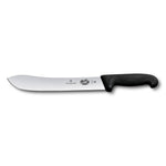 Victorinox Fibrox Chef's knife with a wide, straight edge 25 cm blade and black plastic handle.