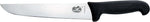 Victorinox Fibrox Meat and butcher knife with straight edge 23 cm blade and black plastic handle.