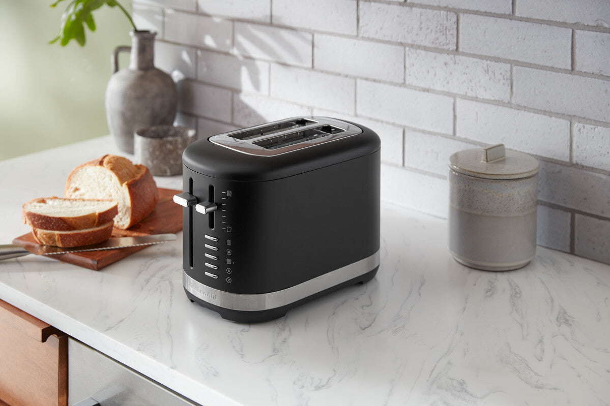 The KitchenAid toaster 2 slice is ideal for breakfast, lunch or late night munchies. It’s reliable, efficient, toasts any size bread, and has 5 shade settings to keep everyone happy. Enjoy toasted food your way with this no-hassle toaster.