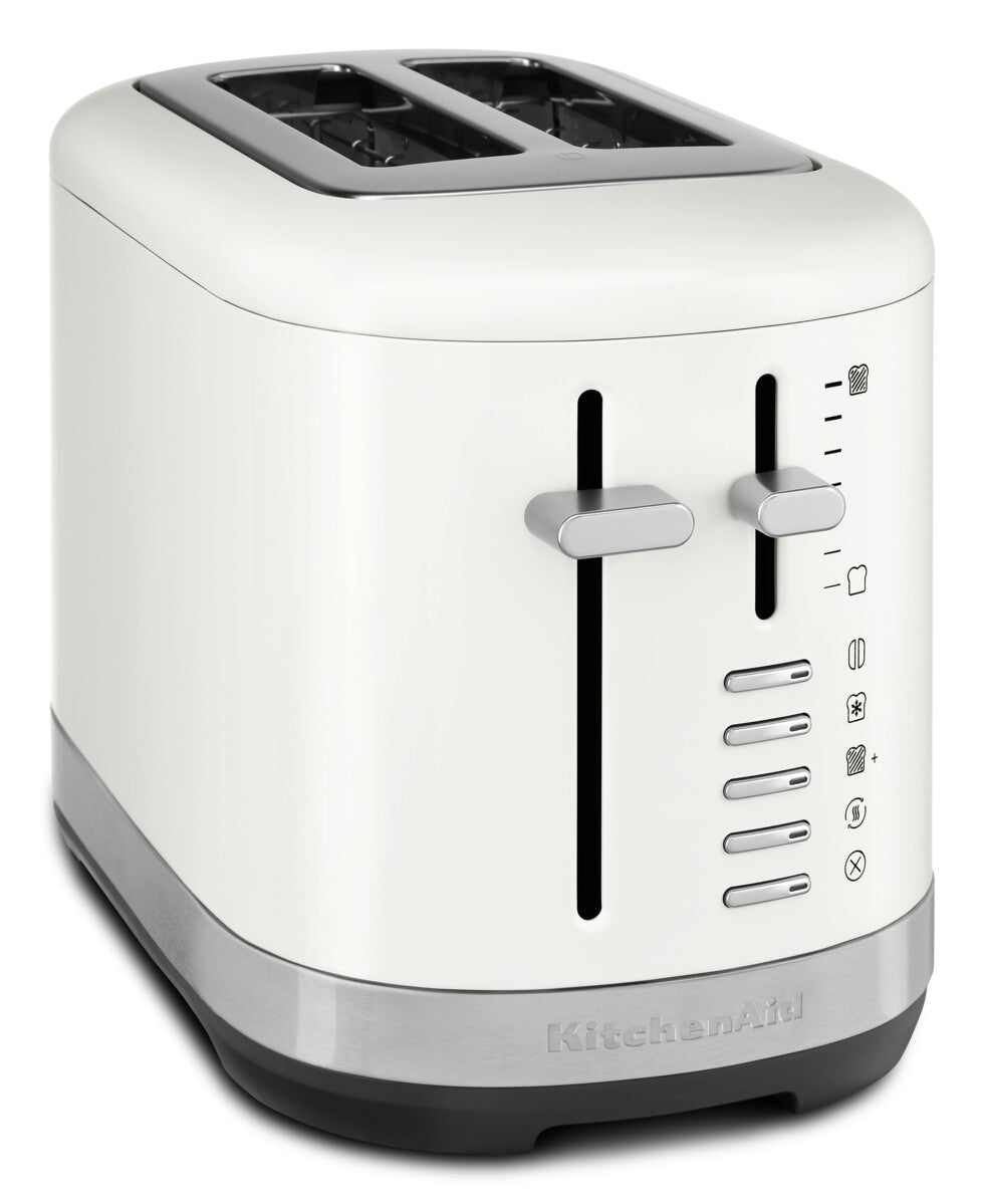 The KitchenAid toaster 2 slice is ideal for breakfast, lunch or late night munchies. It’s reliable, efficient, toasts any size bread, and has 5 shade settings to keep everyone happy. Enjoy toasted food your way with this no-hassle toaster.