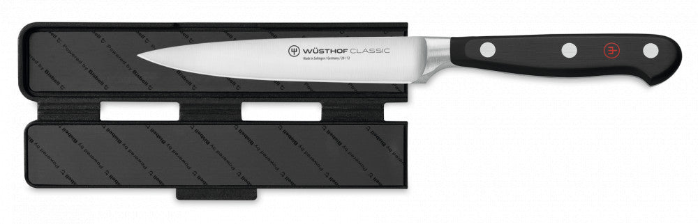 The magnetic Wüsthof blade guard ensures safe storage of knives, protecting them from scratches and damage. This hinged blade guard is easy to open and magnetic, allowing for secure closure.